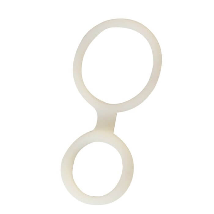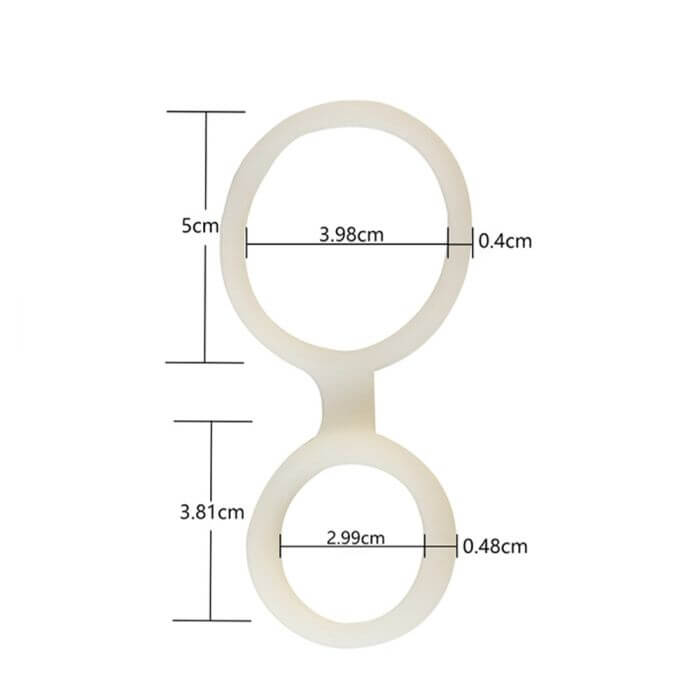 Anillo peneano doble. Uno para colocar en la base y ayudar en las erecciones, el otro para abrazar testiculos y retrasar eyaculaciones. Silicona semi elástica y en dos diámetros diferentes para que elijas cual usar en dónde.