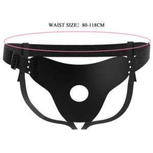 Arnés con cintura elástica ancha y correas regulables en piernas. Frontal de silicona suave con aro para poder acoplar el dildo/consolador que prefieras.