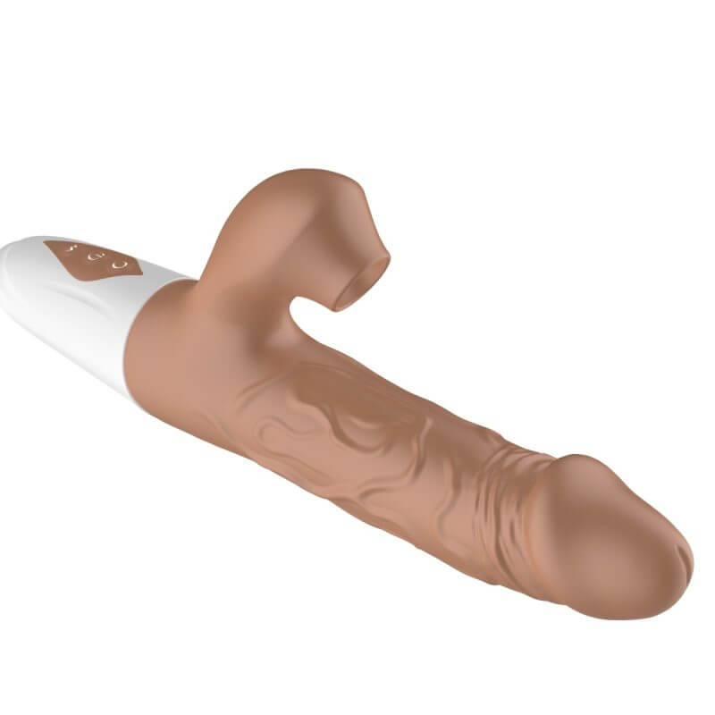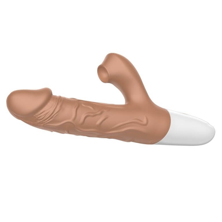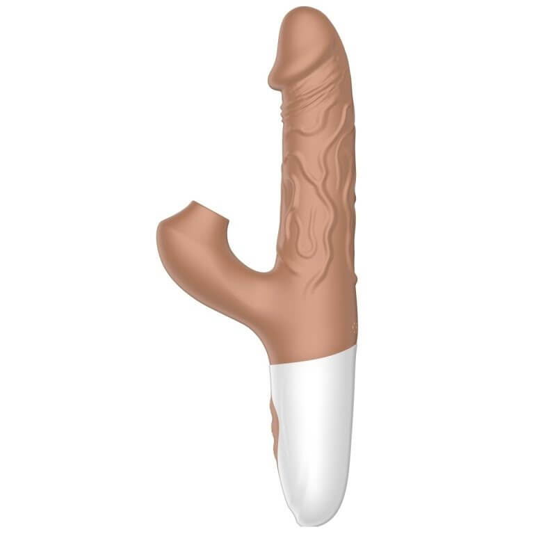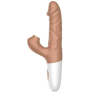 Nuevo dildo realista, en forma de pene, con todos sus detalles, que incluye vibraciones potentes, succionador clitorial y la función de penetración autónoma. Simplemente debes colocarlo, encenderlo y dejar que él lo haga todo.