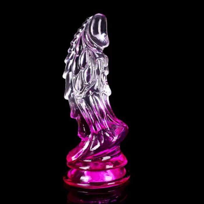Dildo de silicona transparente bicolor con diferentes texturas, pensadas para provocar sensaciones y placer extremo en la fricción de la inserción. Posee ventosa super adherente en base para que puedas pegarlo a la pared o el piso y disfrutarlo libre de manos. Además, su diseño semi curvado va a llegar de manera super efectiva a tu punto G o próstata, para que te sea inevitable experimentar lo que es tener orgasmos potentes!