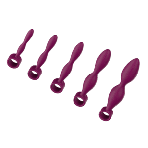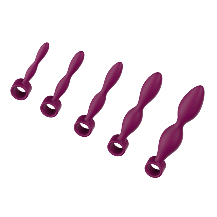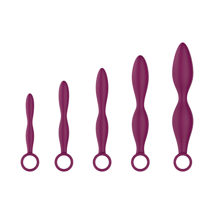 5 plugs dilatadores elaborados en silicona premium de alta calidad e hipoalergénica, con anillo en base que además de brindar una cómoda manipulación, actúa como tope/tapón. Su diseño y diferentes tamaños, símil conos y escalonados, permiten una inserción suave, progresiva y fundamentalmente efectiva en lograr dilatar el ano y esfínter. Te prepararan para poder disfrutar luego del sexo anal sin dificultad, sin dolor, de manera inmediata y, sobre todo, disfrutándolo y gozándolo a pleno !
