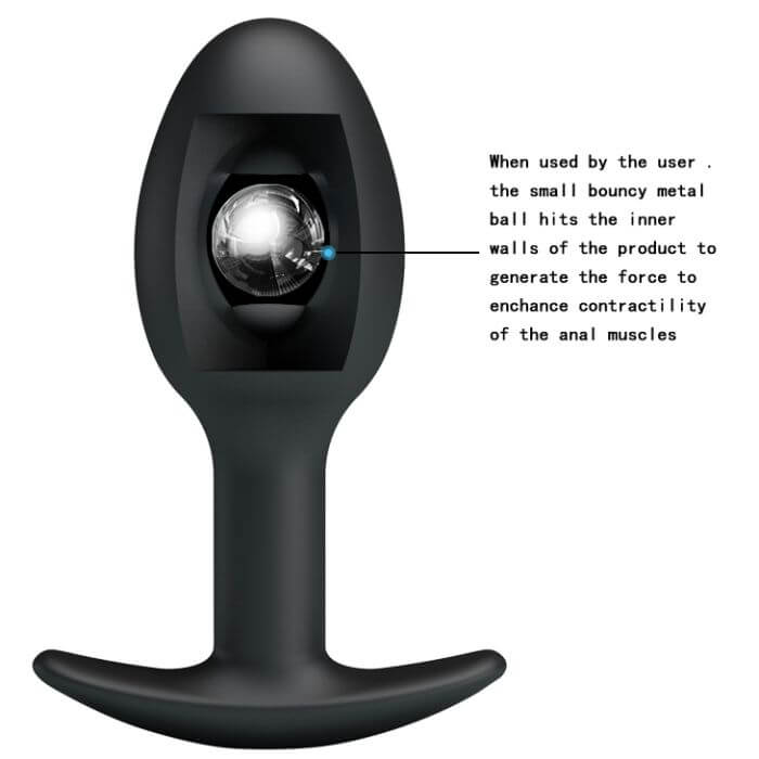 Novedoso plug anal que incluye en su interior una esfera metálica con peso que se mueve al moverte. Teniéndolo colocado, al moverte se moverán las esferas internas y eso genera que tu esfínter y los músculos internos del ano se contraigan por reflejo, generando un ejercicio de elasticidad y fuerza que te dará no solo mas placer en el sexo anal sino mejor flexibilidad de apertura y dilatación. Al tiempo que mejorará la calidad y durabilidad de tus erecciones.