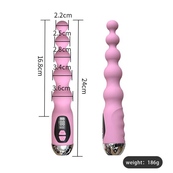 Vibrador en forma de varita con esferas de diferentes tamaños, perfecto para disfrutar de una estimulación distinta, progresiva, gradual y super placentera. La ventaja de los diferentes diámetros de cada una de sus esferas es que permite una inserción progresiva, más suave e ideal para la dilatación. Por esa razón, éste juguete es ideal para uso anal también.